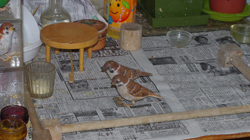 2019年03月18日 3月18日 今日は何とか… 古い写真も貼っていきます。バルサ細工は彫刻刀とカッターナイフで作ります。本格的なバードカービングより簡単に出来ます。アクリル絵の具で細部を描きこんでいくのも楽しいものです。親から早く離れた子雀はなんとなく寄り添ってきます。でもスズメ達がテーブルから突き落としたりいたずらするのでボロボロになりました。ところで今日のお昼。親の心子知らず…って言うか。食欲には勝てませんね。 「マスター顔が恐い!」…それはね君たちを守るために窓の外を睨んでいるからだよ。 悪い奴が来ないか見張るのも疲れるなぁ~。