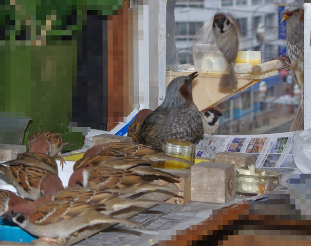通りがかりのチョウゲンボウだったら高層ビルから狙っていたのだろう。シメの奴だったら近所の神社かお寺などに巣を作られたら…近所のスズメは絶滅するからね~。