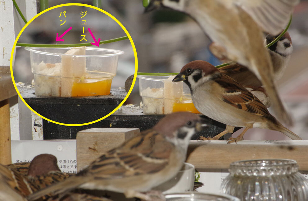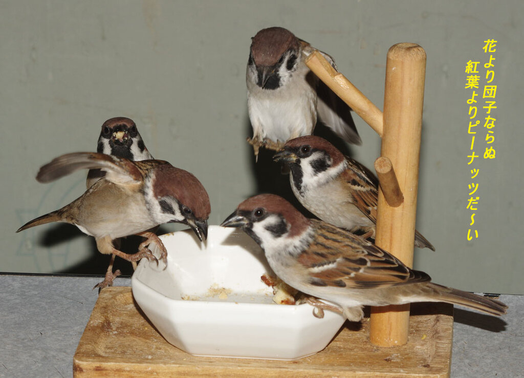 腹が減っているスズメ達のため…こんな時は演歌気分ね。
