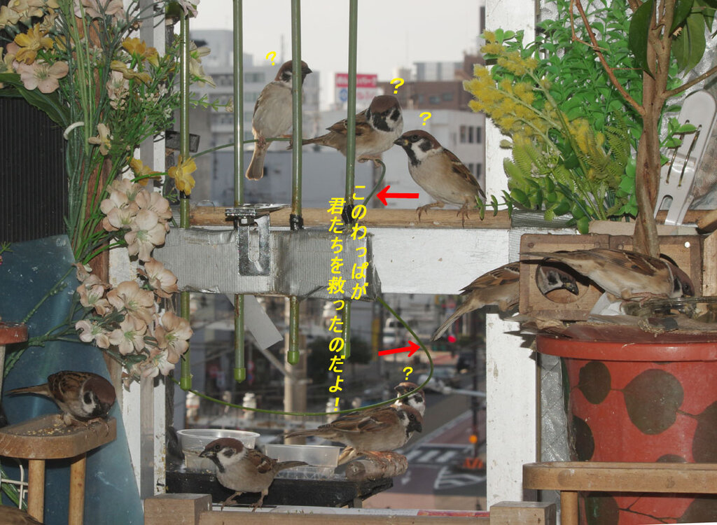 時々チョウゲンボウが覗きに来るけど防御柵で入れないから何とかスズメたちは無事のようです。外で襲われたら何ともしようがないけどね。