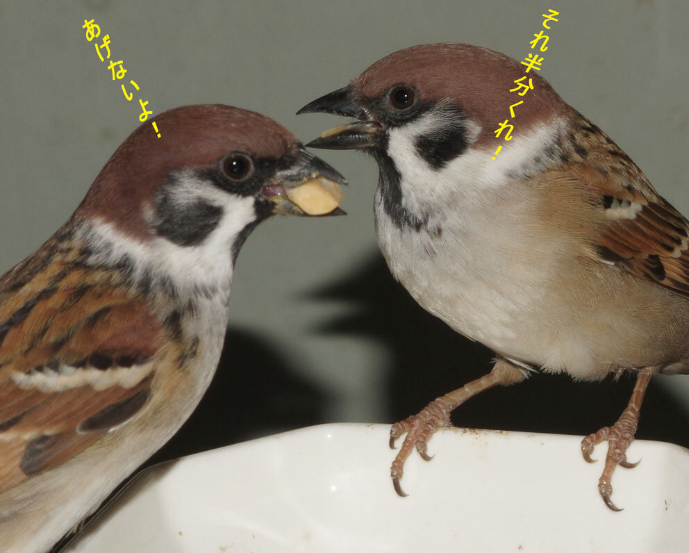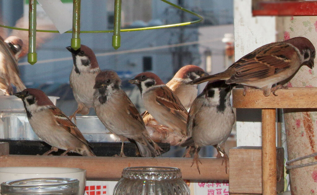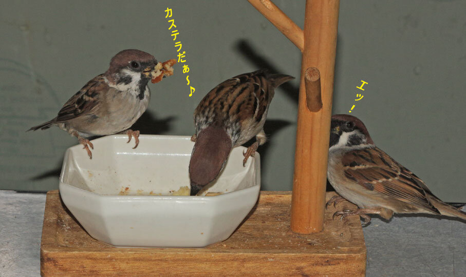 ランチタイムのスズメたちは40羽くらいでしたが冬場は食べ物が少ないようで60羽くらいになっています。ここから出て行った子もこっそり戻っていたりするのかも。