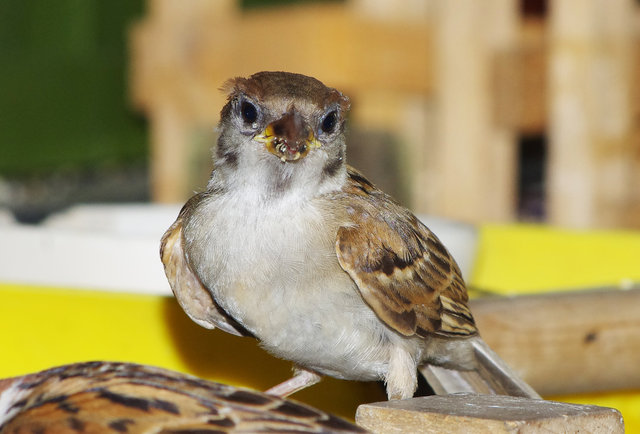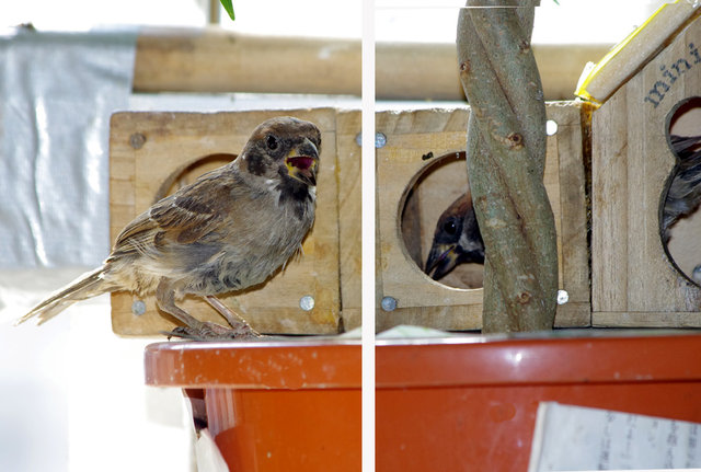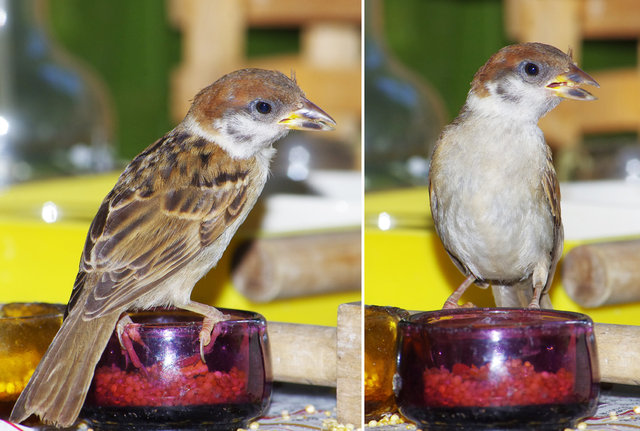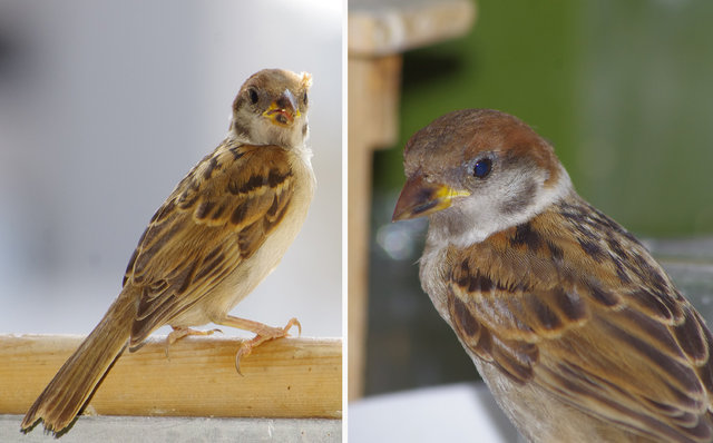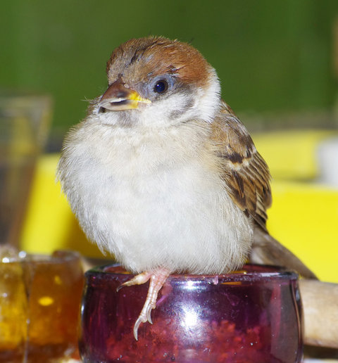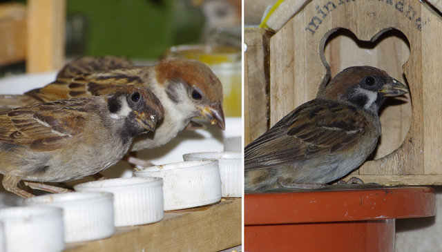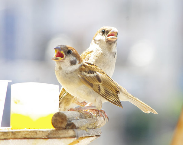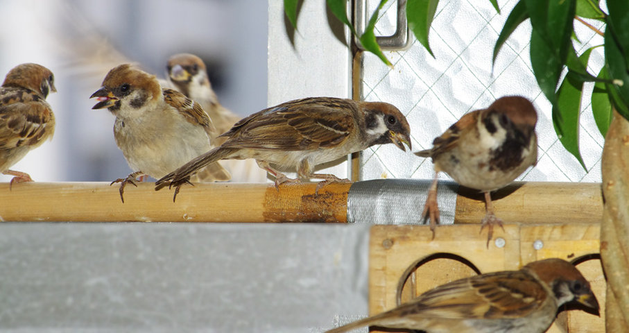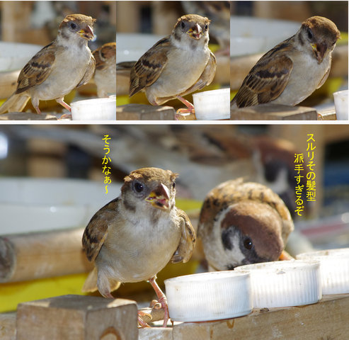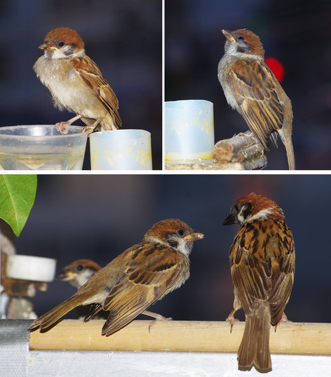 スズメの第3次産卵期のヒナはまだ少ないがよく育っています。