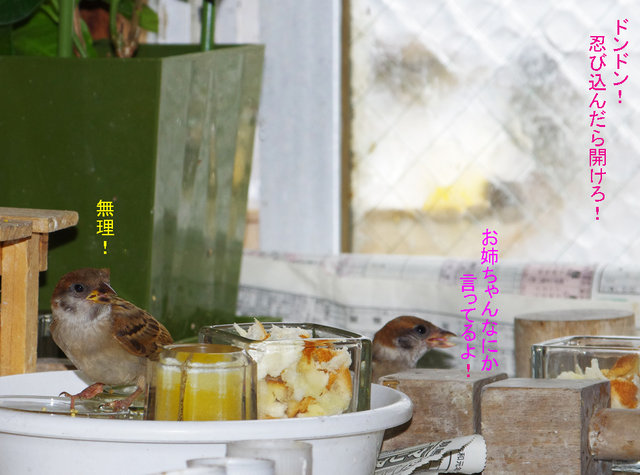 二人で充分に食べた後で妹は外に出られないと騒ぎ出したので窓を開けてお帰り願う。