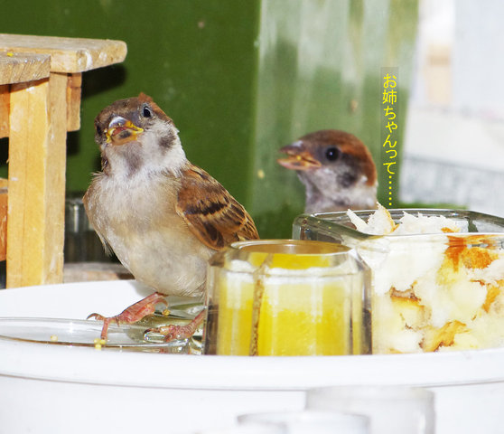 今日も猛暑!遅生まれのスズメのヒナ祭りかなといつものように昼前に解放区食堂の準備をしておいた。開店が遅れると機嫌が悪くなるお客様ですからね。