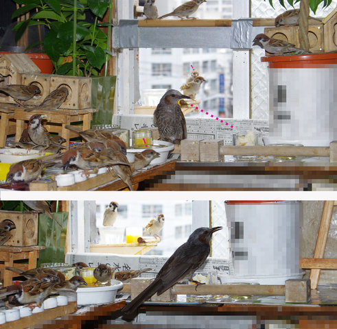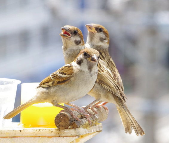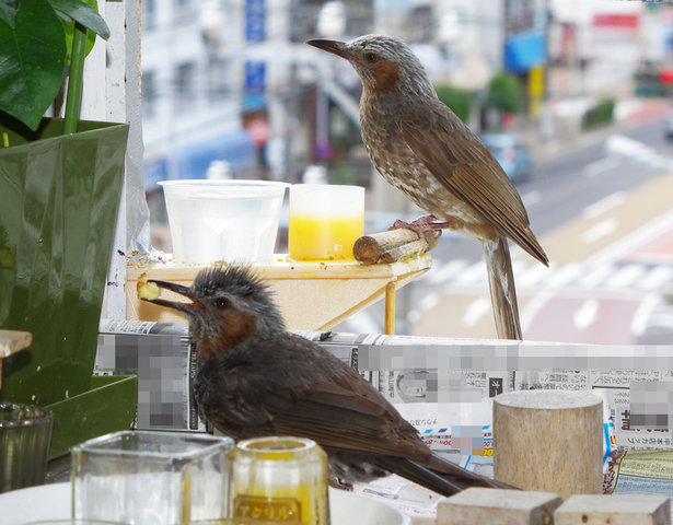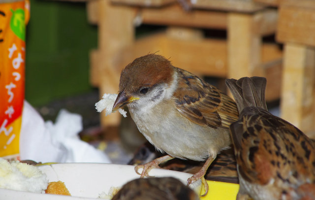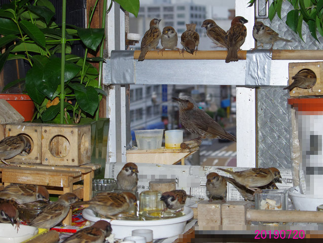 午前中に虫がでなかったのかな。スズメの数が増えすぎて近所の街路樹には虫がいなくなったのか?大きなお寺もあるからそちらで虫捕りのお仕事をしてね。
