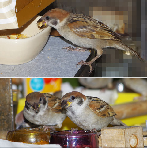 ニバンかピーターのかみさんはジュースだけでカステラを食べに入ってこないのでスズメたちははしらけてしまいます。