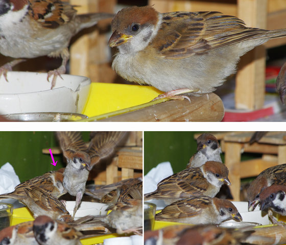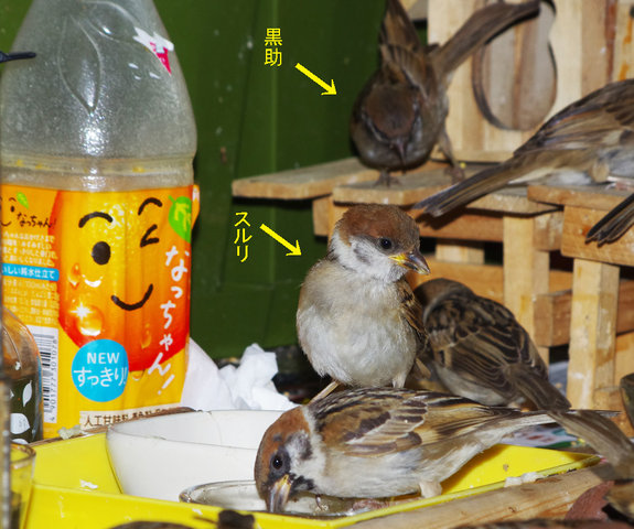 ここで目立つのは先日スルリと侵入した子。スルリちゃんと命名したのですがその後食べる食べるでおでぶちゃんになりましたね。この子はホッペのニューが小さいのでお顔が白く見えるからよく目立つ。やんちゃ坊主が暴れても知らん顔。