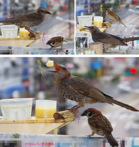 ヒヨドリが来ると「ニバンさんだ~」とよっていくのはカステラ投げがあると思うから。
