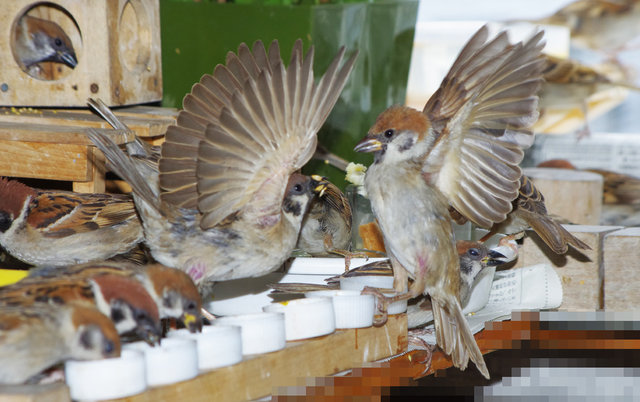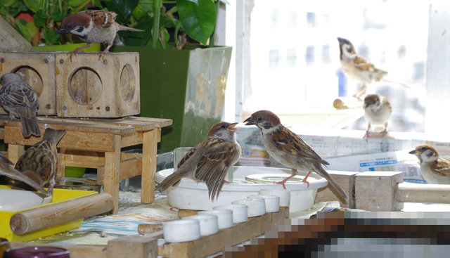 この娘にはスズメ達は知らん顔でまったく反応しない。カステラが飛んでこないことを分かっているから。ピーターのすぐあとだから一緒に行動しているらしい。娘がいたとはね~。