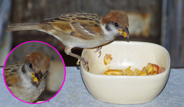 この茶碗には大人の常連さんしか来なかったのですがチビさんは仲間入りできたようですね。すぐに水浴びするおじさんにネクタイが茶色のおじさん、写ってないけど矢印さんなど。ピーナッツ大好きです。今日もスズメとヒヨドリ番でした。