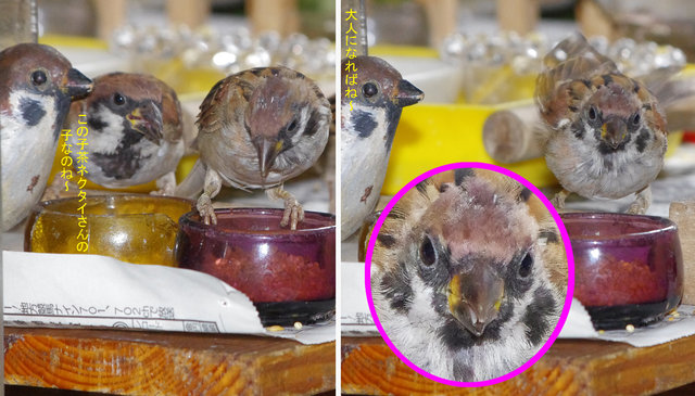この子は最終ヒナお母さんが一生懸命まん丸に育ててに育ててくれたのにね~。 たくさん食べてきれいになるのだよ。