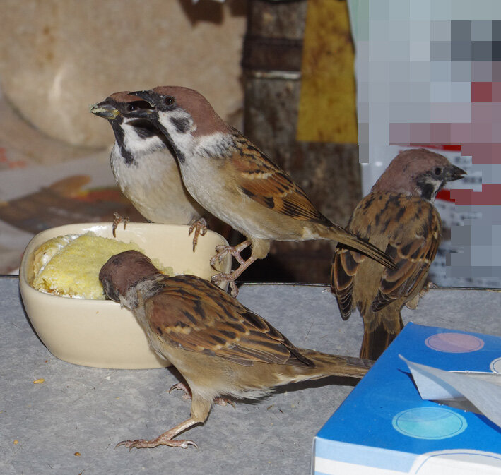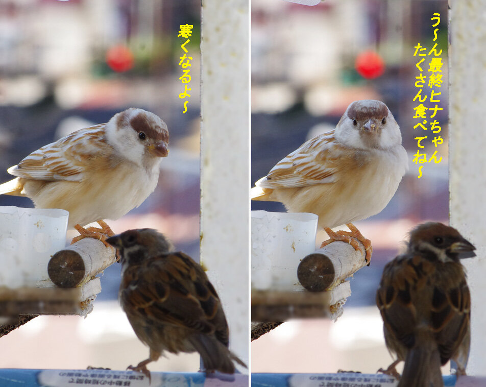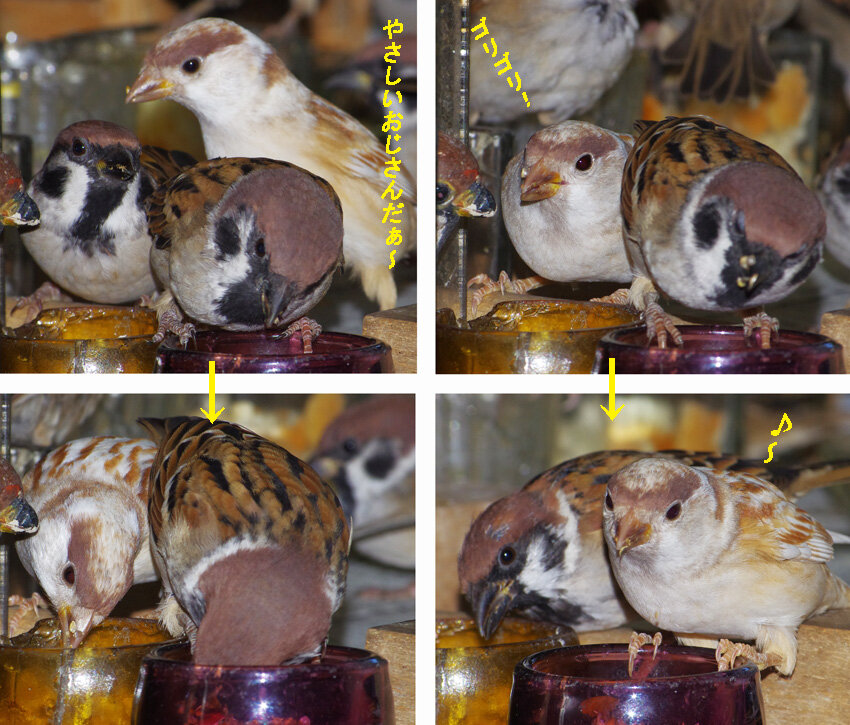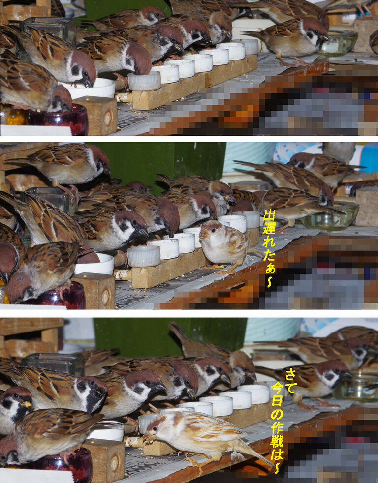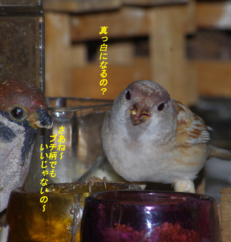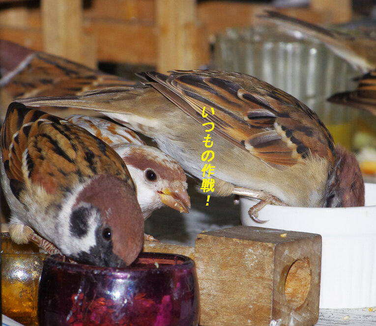 結局大人たちが食べて飛び去った後でやっと茶碗にたどりつけました。子供の時間ですね。 この頃ブッチー日記みたいになってるけど目立つからね…。