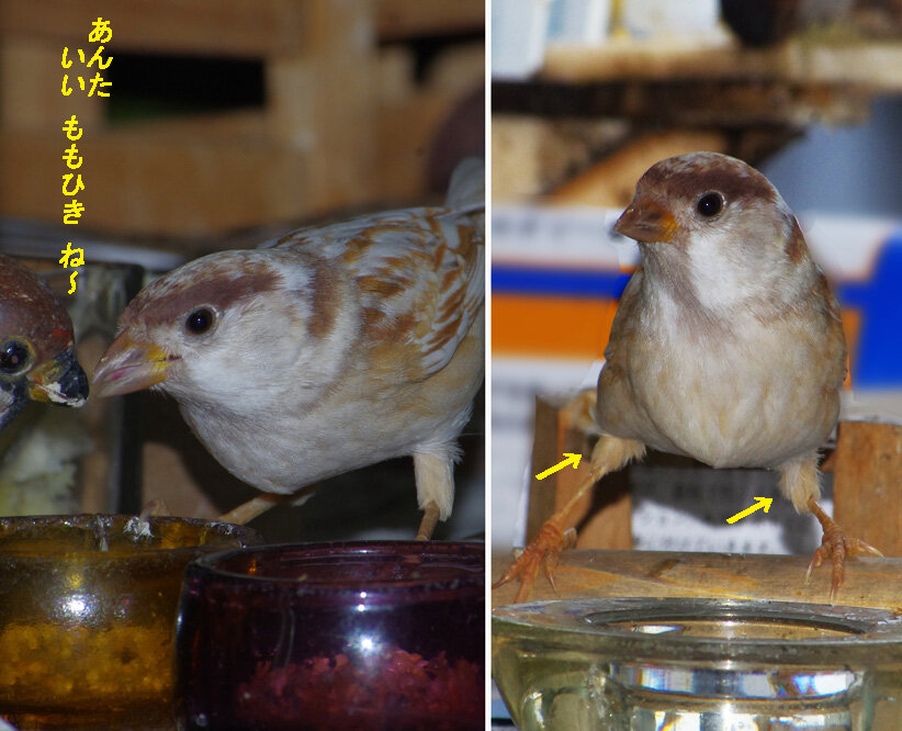 夏ヒナ最終便の3羽はどうも成長が遅れています。大人と比べるとこんなに差がある。ブッチーは8月末に仲間になった時はもう少し大きかったかな。▼男らしいブッチーさんを見てね~。