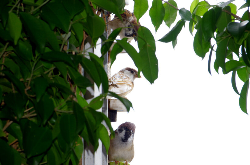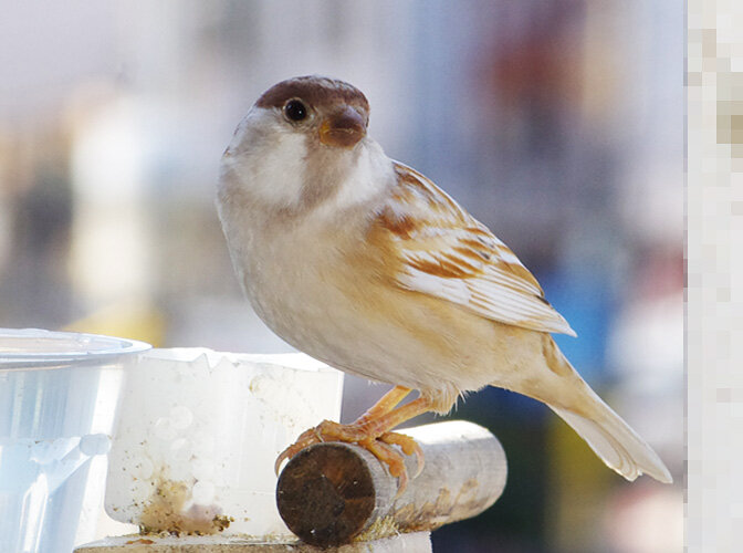 ビル縁に白い鳥がチラリ…まだ白い子がいたのかと写してみたらハクセキレイでした。この子が帰って来る季節なんだね~。