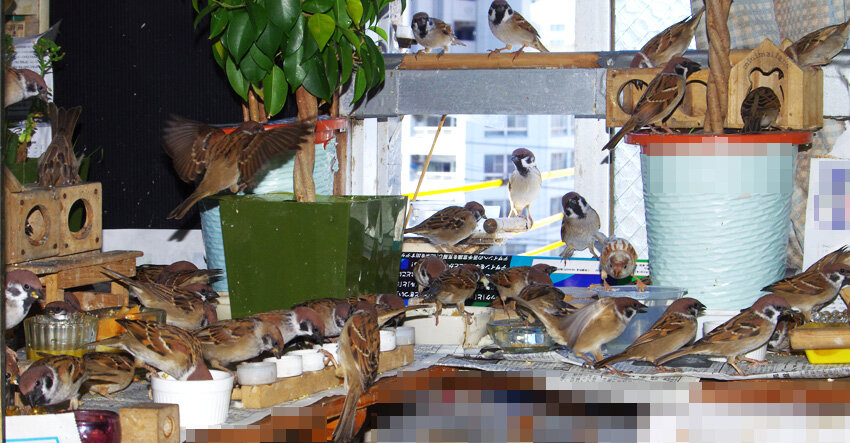 結局大人たちが食べて飛び去った後でやっと茶碗にたどりつけました。子供の時間ですね。 この頃ブッチー日記みたいになってるけど目立つからね…。今日は一日中小雨が降っていました。CDの吊るされたベランダにはいかないでほとんど解放区でブラブラしていました。追い払うには「掃除当番は決まったか!」で逃げだすけど今日は勘弁してあげる。明日は晴れるといいね~。