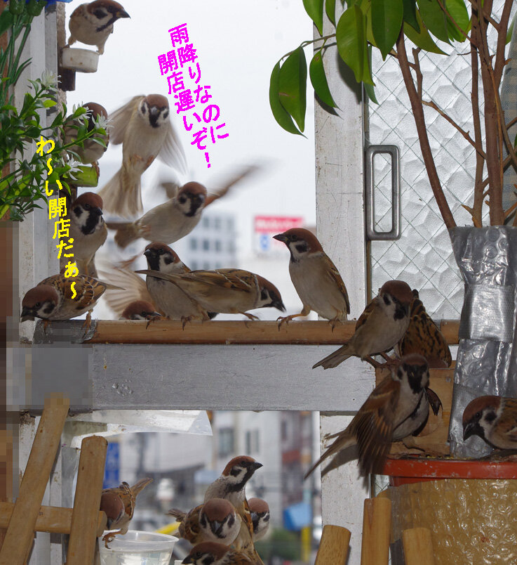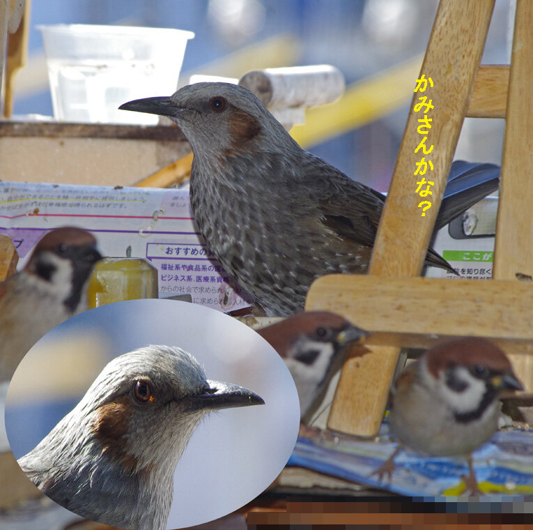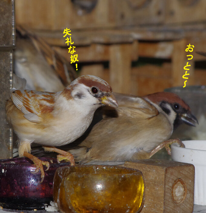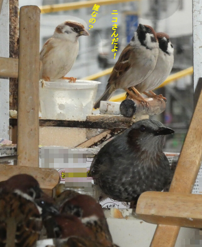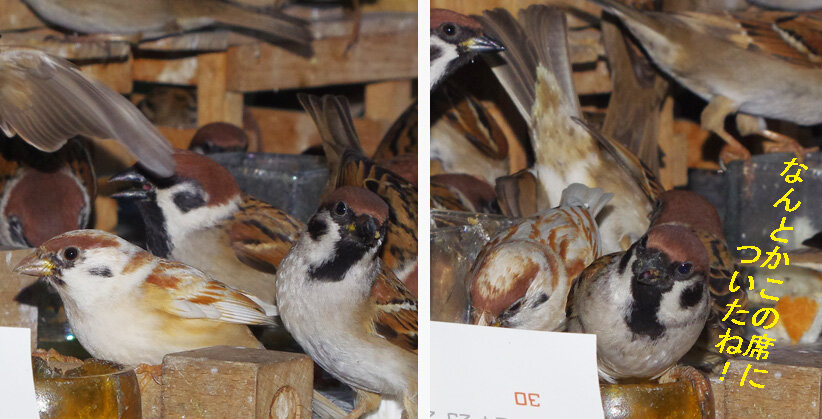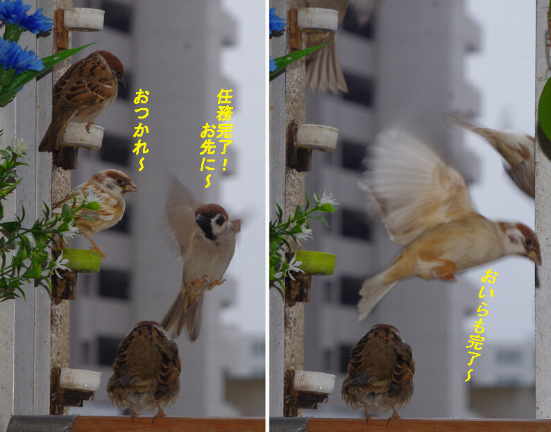 ここでは旅立つ前のスズメのお知り合いばかりなのでゆったりした気分でいます。どうやらかみさんも一緒に帰って来たようです。