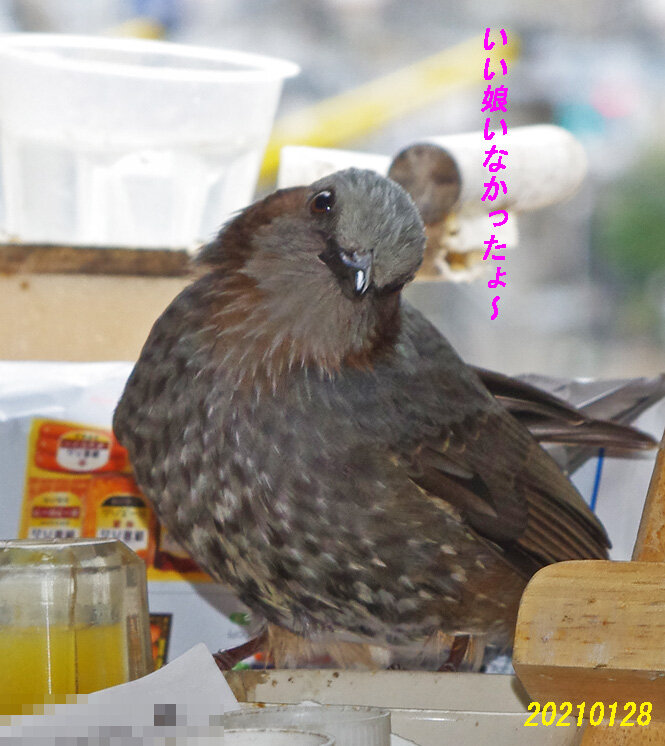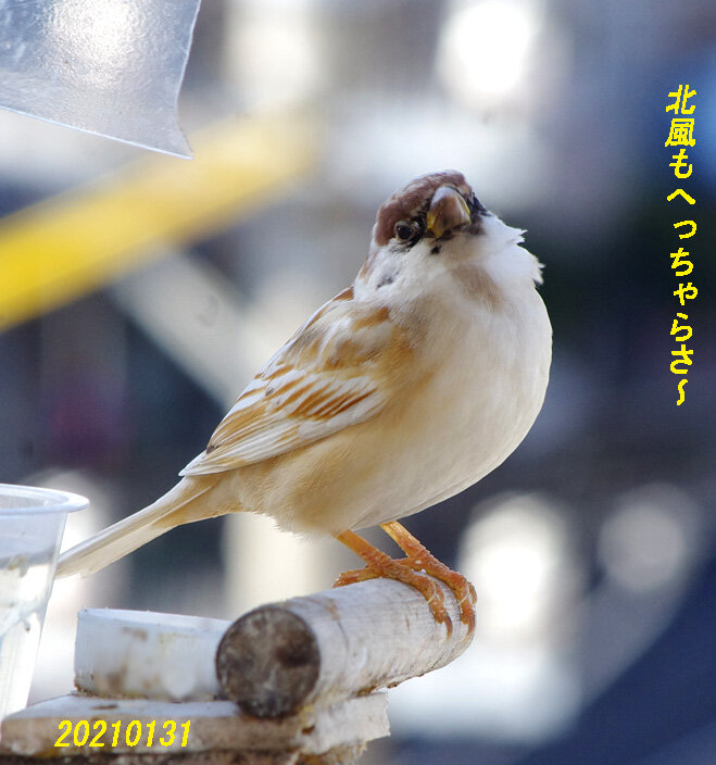 朝は少し雪が積もっていた。スズメ達は寒かったろうね。美味しいもの沢山食べて冬を乗り切ってね。