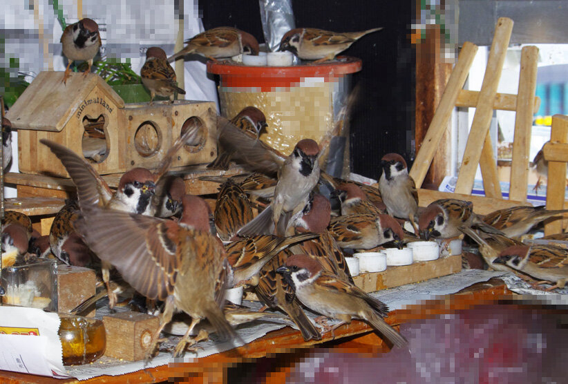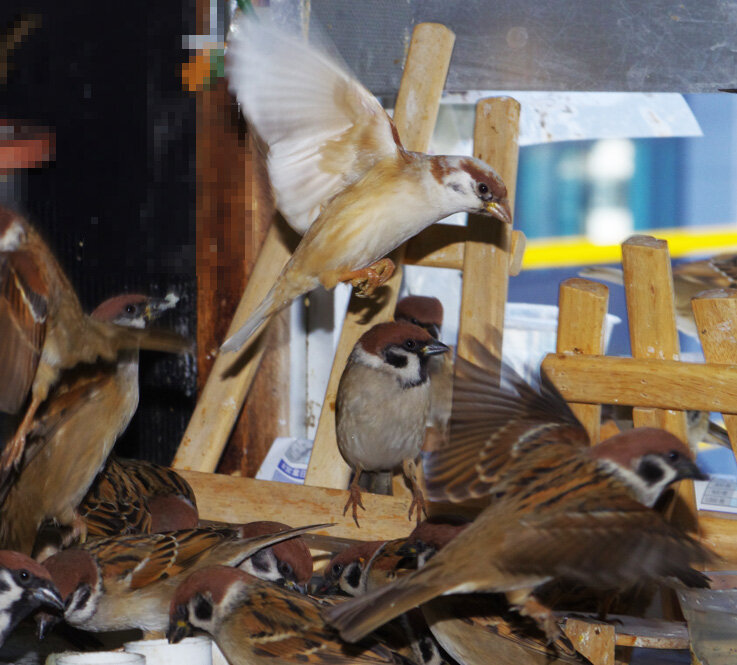 開店待ちの皆さんが続々とご入店…。大騒ぎで食べるとほとんどがどこかへ行きました。少し空いてくると弱い子も食べられます。よそから来た子や気の弱い子はこれから食べられます。