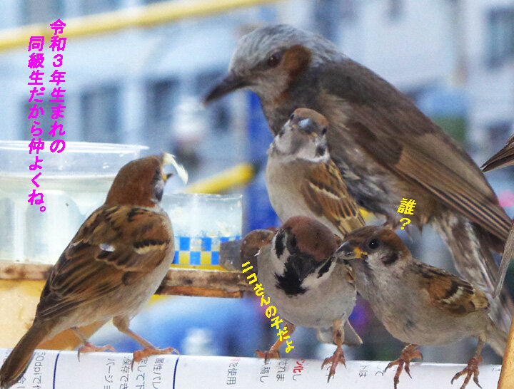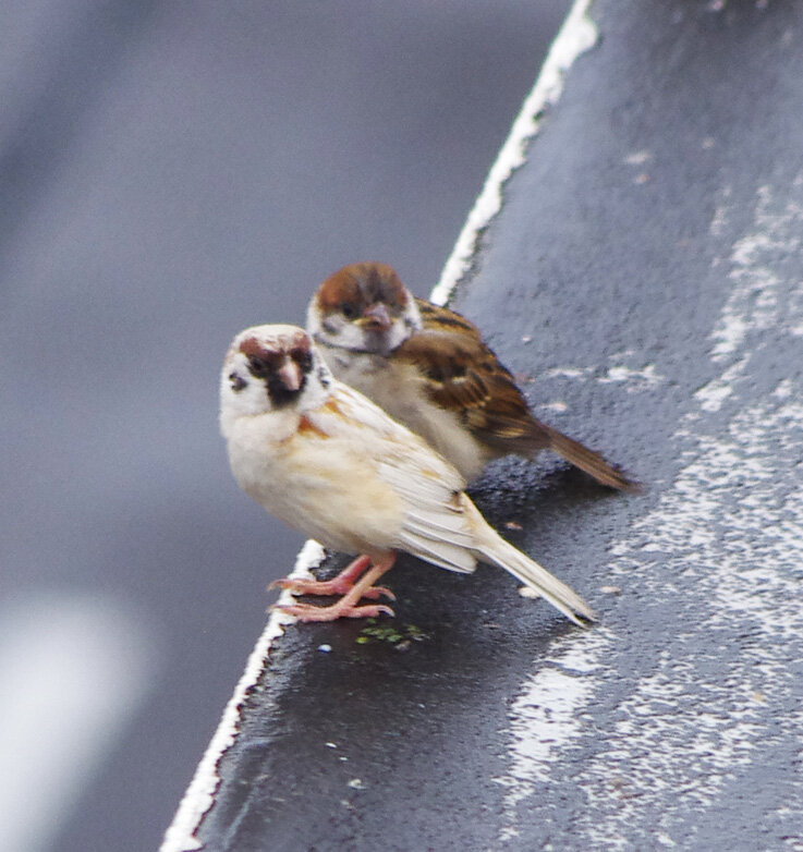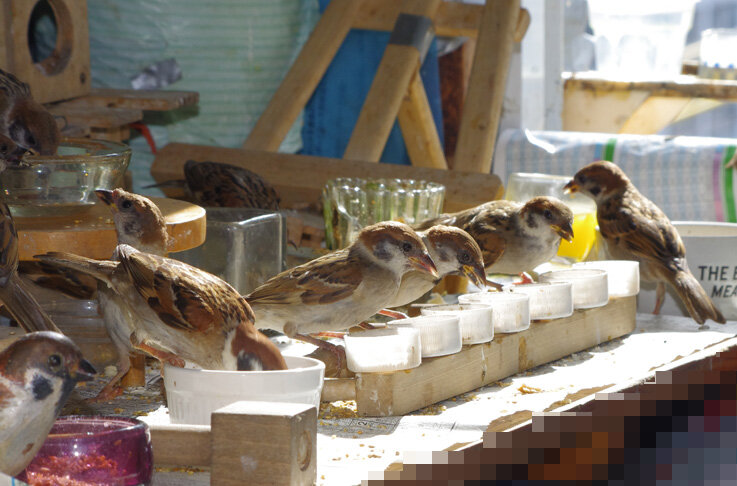 朝から小雨でスズメ達は開店早めてよと騒がしい。ピーターが来てニコが来て、ニコの子供が来た時にスズメ達に囲まれる。スズメのチビさん達は怖いもの知らず…。雨が強くなってきました。いい写真が撮れたら追加します。