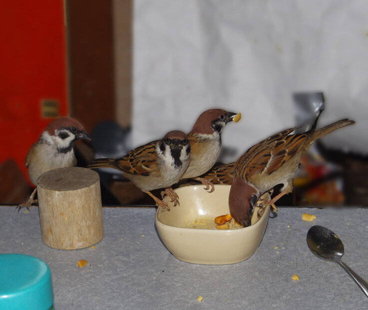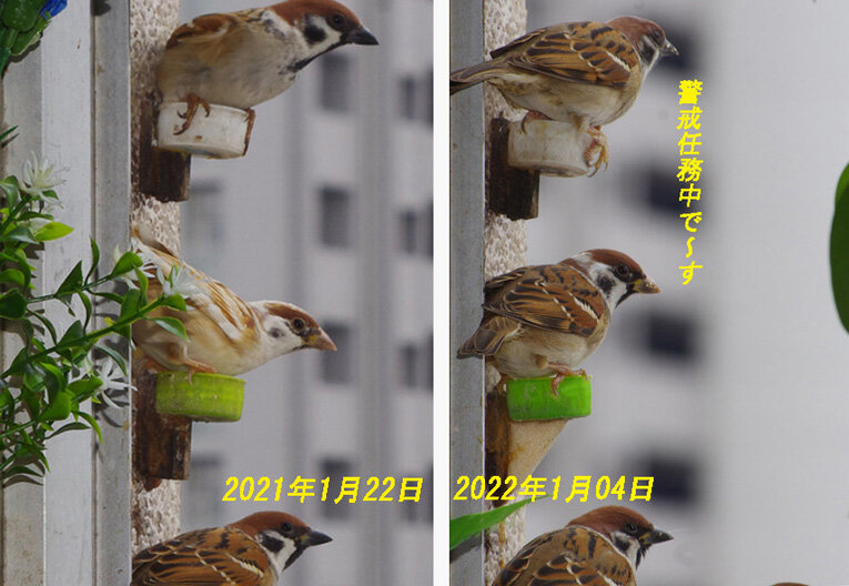 ヒヨドリ夫婦が来ました。外で見かけたのですがビルの周りをまわって「アレッ!」という表情で民家の庭に降りました。去年もニコさんのほうが早く帰還した。もうちょっと待ってね。オレンジジュースとカステラをあげたいね~。スズメもちらほらと見かけるようになった。