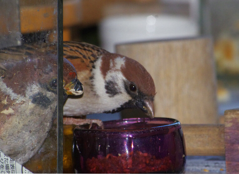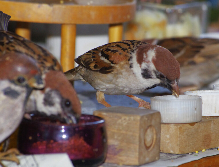 ピーターさんは日に3度ほど来るのですがとまり木がチビさんたちに占領されていたりして戸惑っています。新会員さんもみんなはピーターを尊敬してくれたのにちょっと留守にしたらチビさんがいっぱいで…。ノコたんはまだ新居ができないのだろうか?