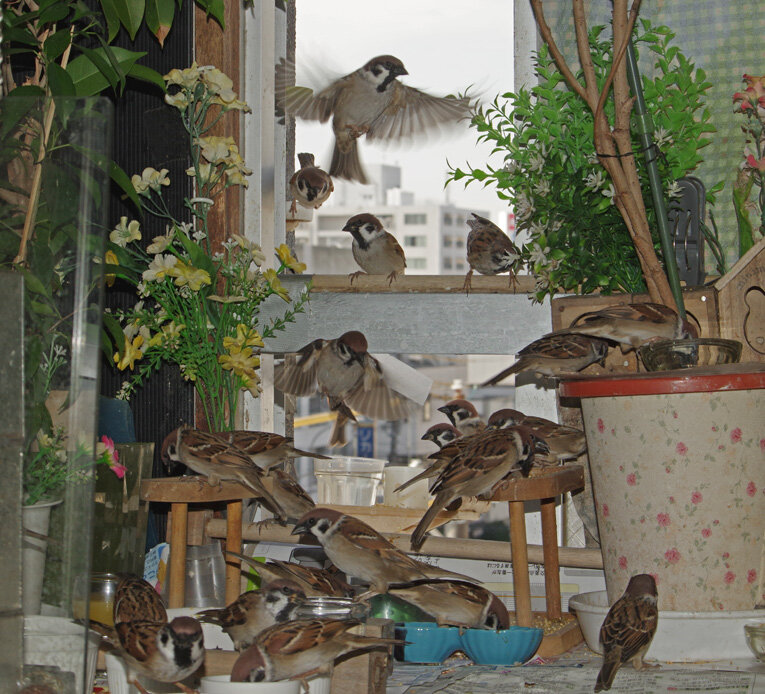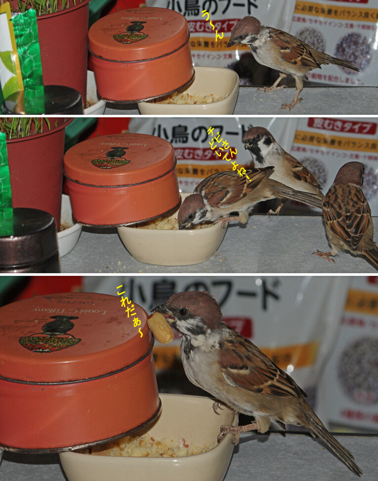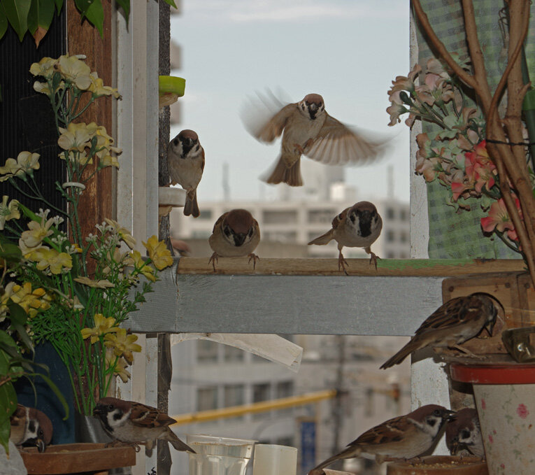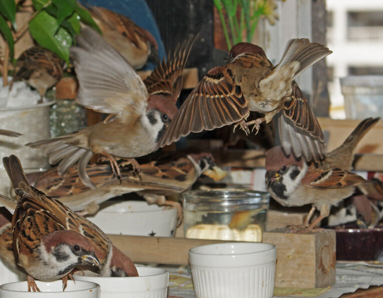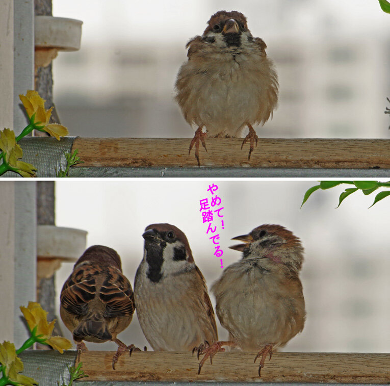 人間もスズメも社会的動物だから「人間関係」ならぬ「すずめ関係」も難しいものかもね。