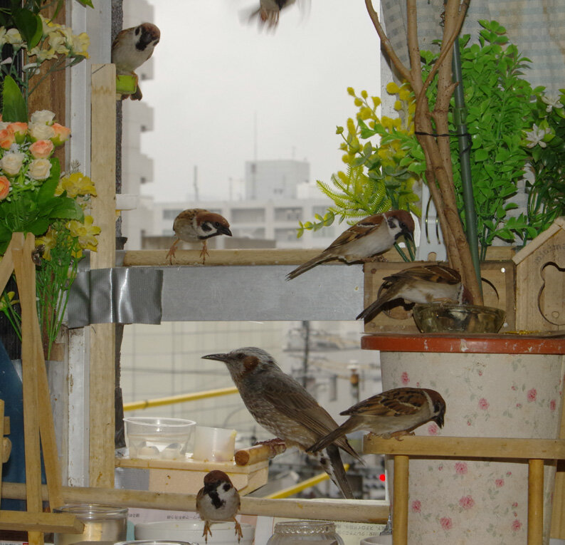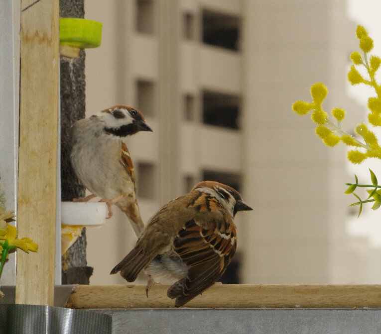 それぞれに新居を探して飛び回っているようです。ヒヨドリは民家の庭などに大きめの広葉樹があれば巣を作れますから余裕がありそうですね。スズメの新居は難しいね~。