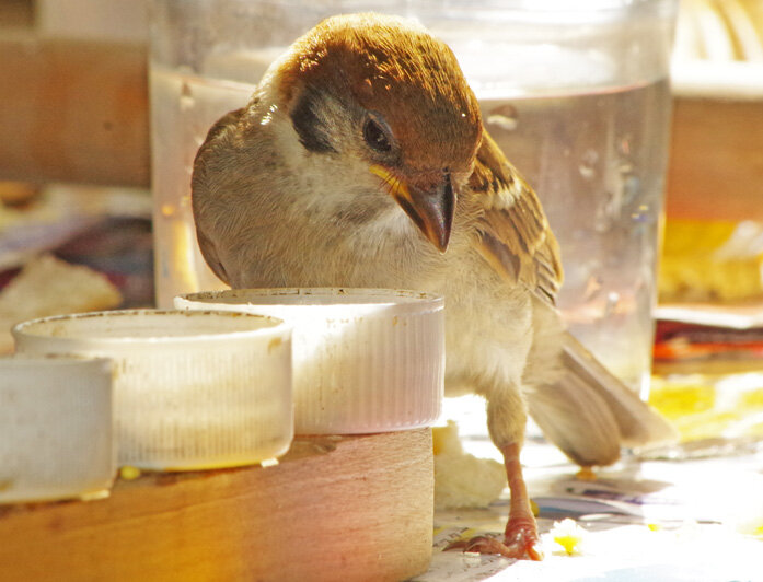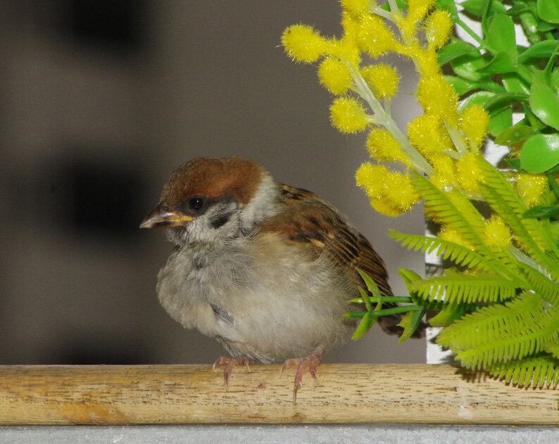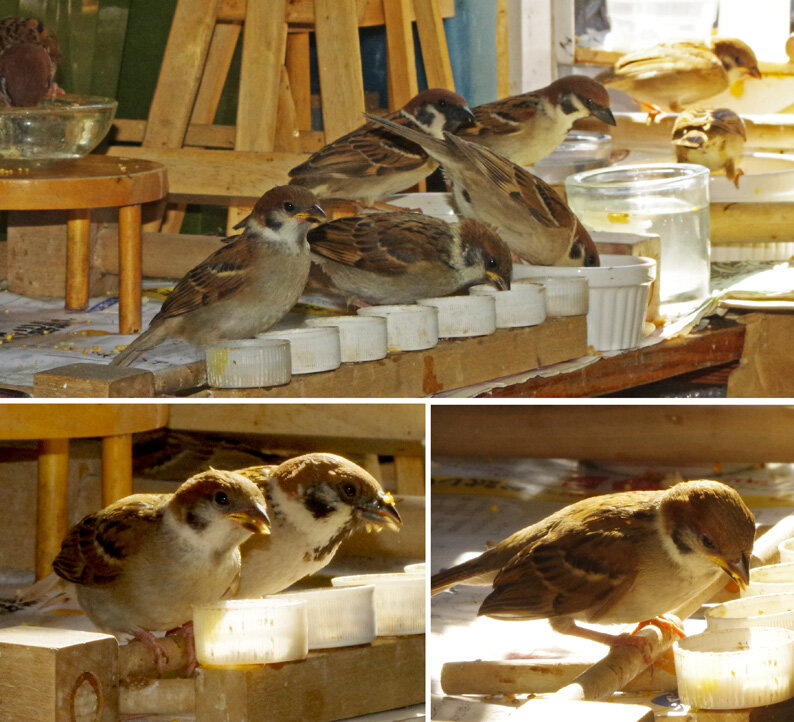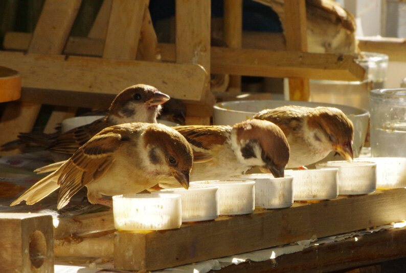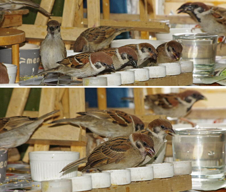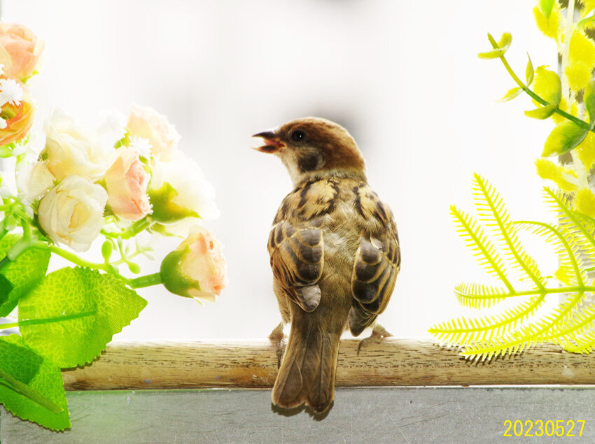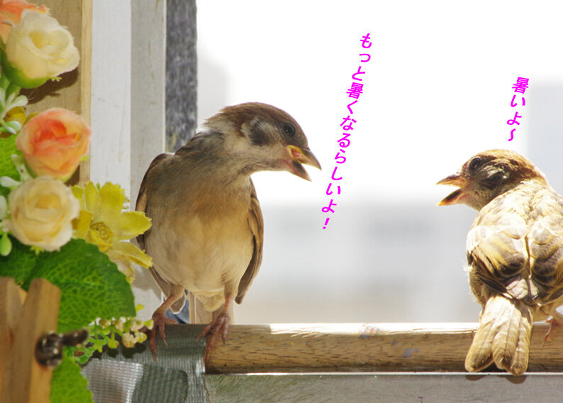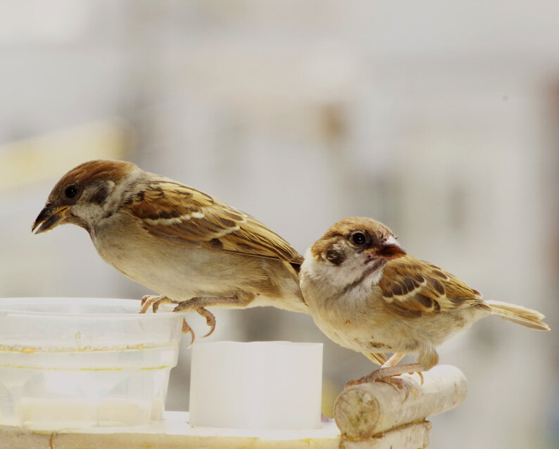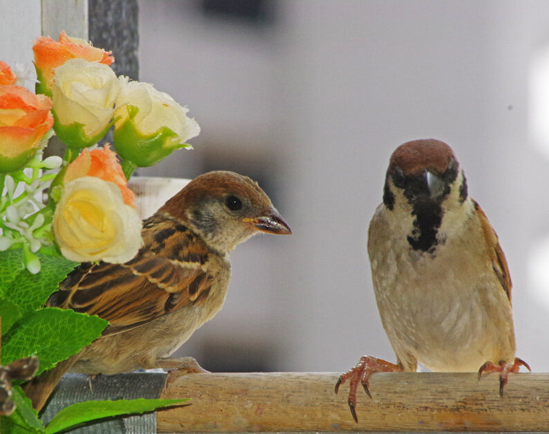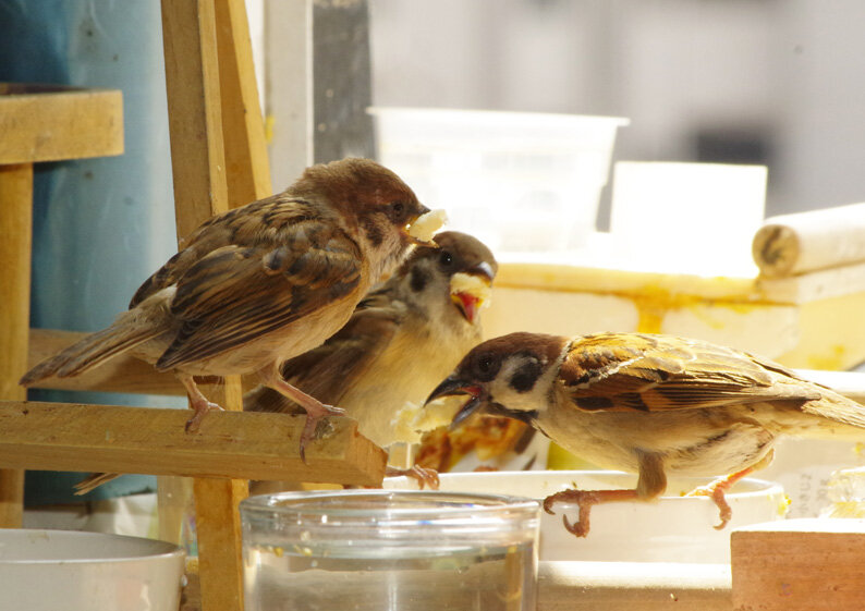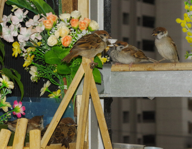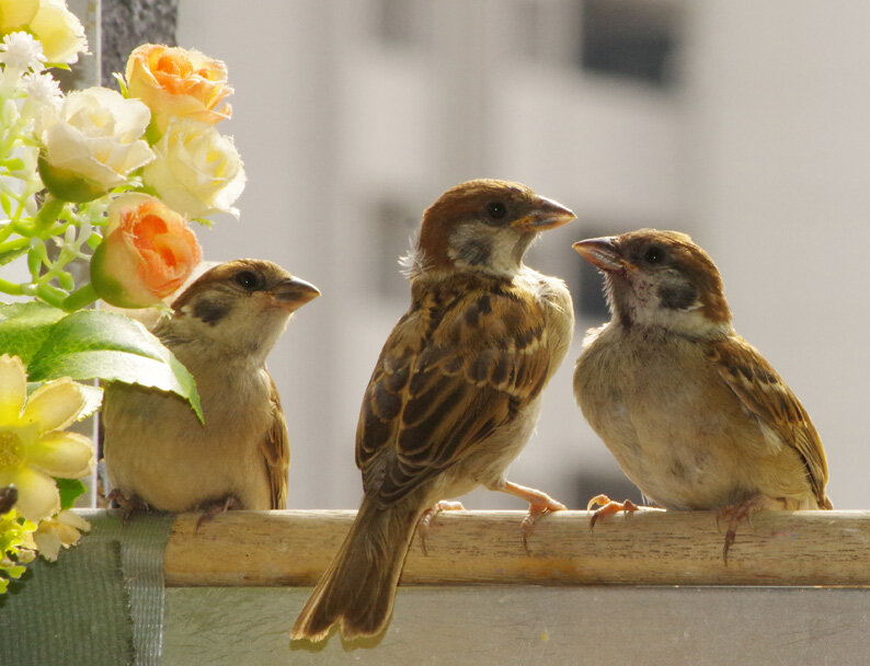 スズメのヒナはお父さんを追いかけて泣いていたのに翌日はもうひとりで食べて仲間と一緒にいる。