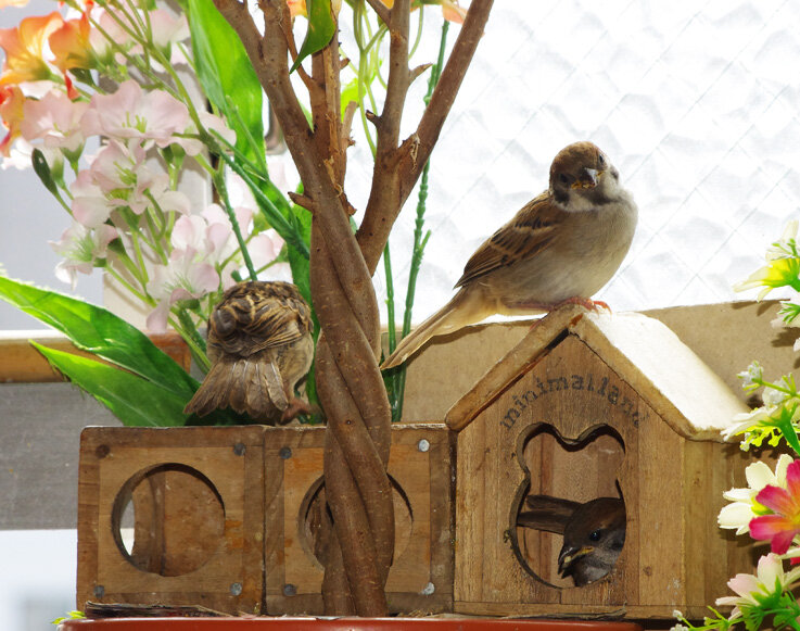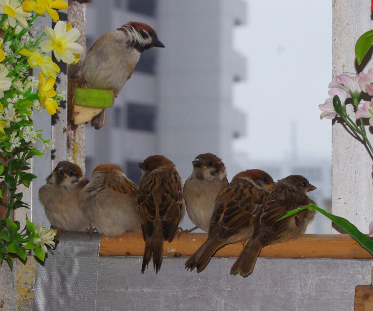 15日(土)は良い天気で巣立ちスズメ達も元気に遊んでいました。