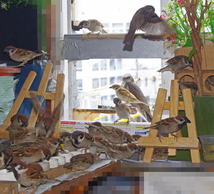 スズメ達はお昼の開店時には大混雑するがその後はそれぞれの餌場や隠れ家なのに行って暑さをしのいでいるようだ。