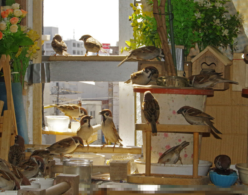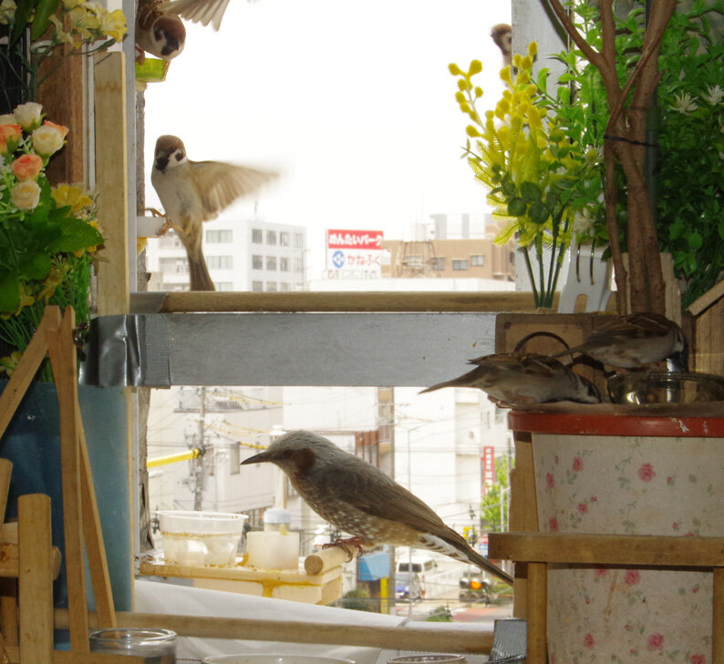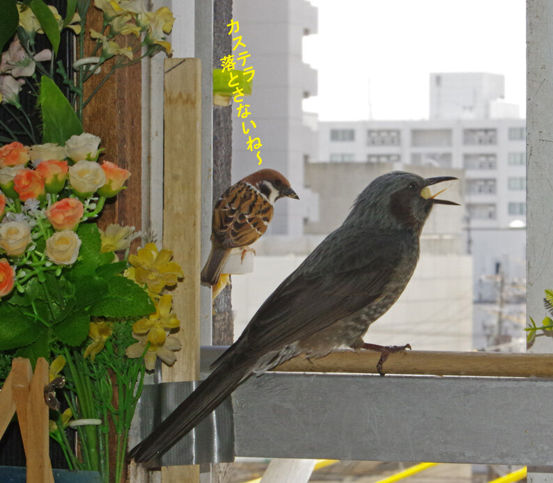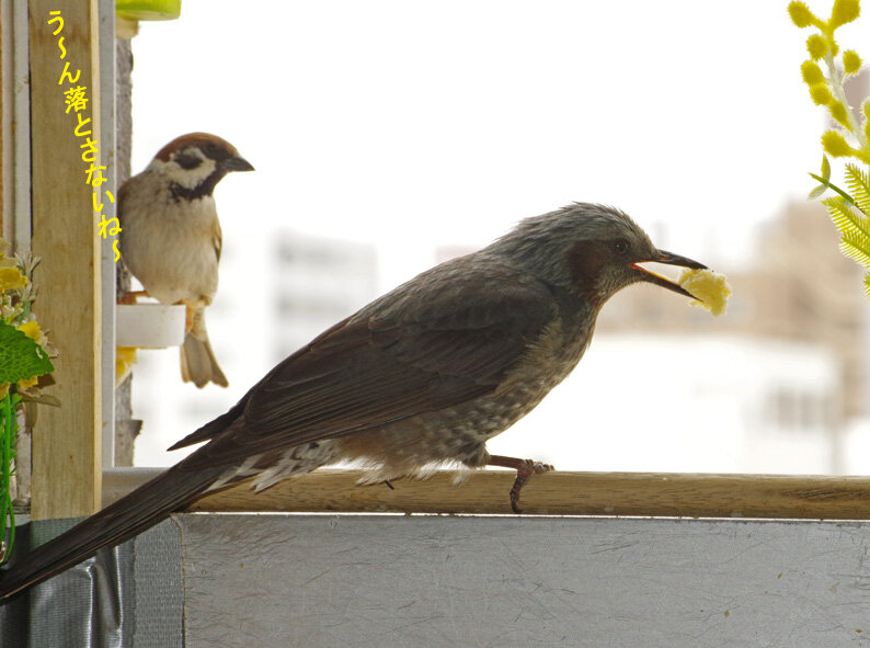 スズメ達も住宅難で新居は遠いらしい。天気がいいとあまり来ない。風が強い日は当てにされているけどね。