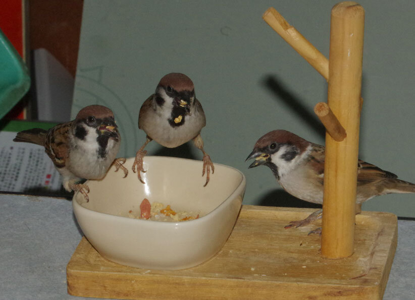 スズメたちは毎日元気ですが他所の子が混じるので落ち着きませんね。今は食べて冬を越せれば上等です。