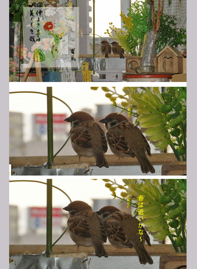 スズメカップルももうすぐ春ですね。こういう二人を見ているのもなんかホッとしますね。