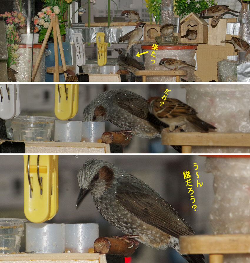 ヒヨドリはあれから毎日来ますが目が合うと逃げてしまいます。若い子だから誰の子だろうね?