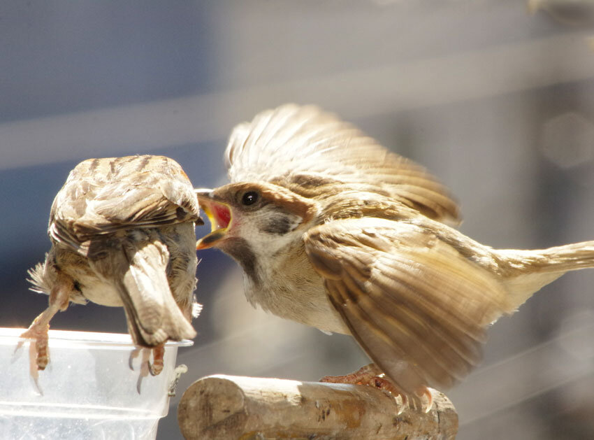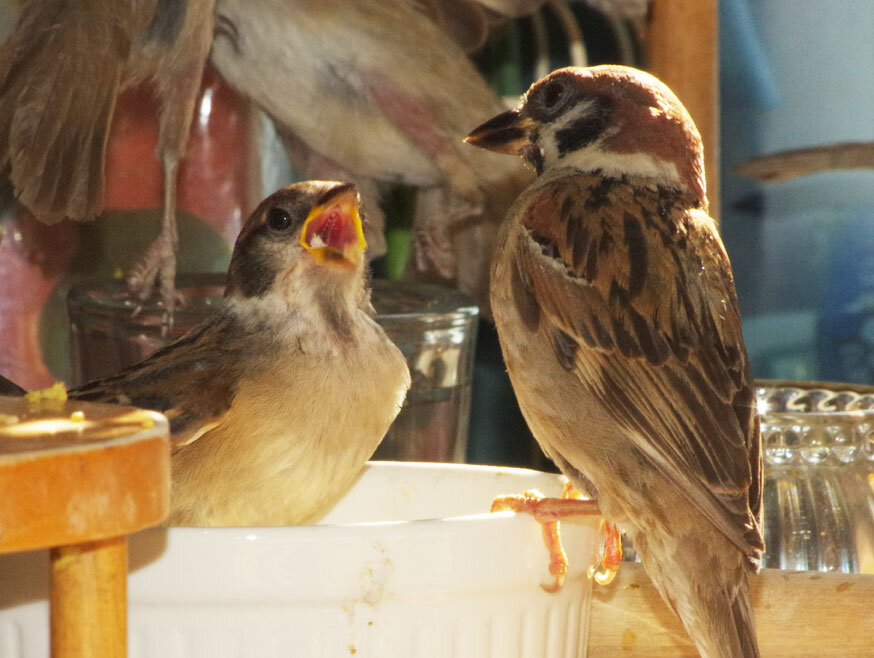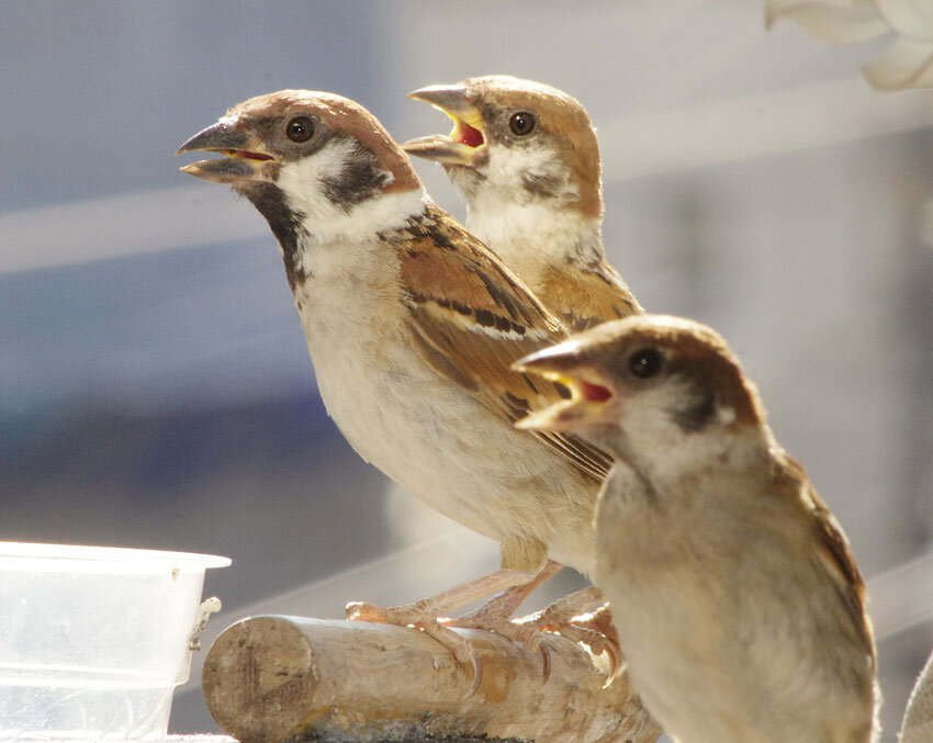 今日もめちゃ暑でスズメたちもすぐに木陰に隠れてしまいます。なのに第3期の巣立ちが始まりました。親もヒナも口をあいて暑そうです。水が美味しいと何口も飲んでいます。街の中には水飲み場はないからね。