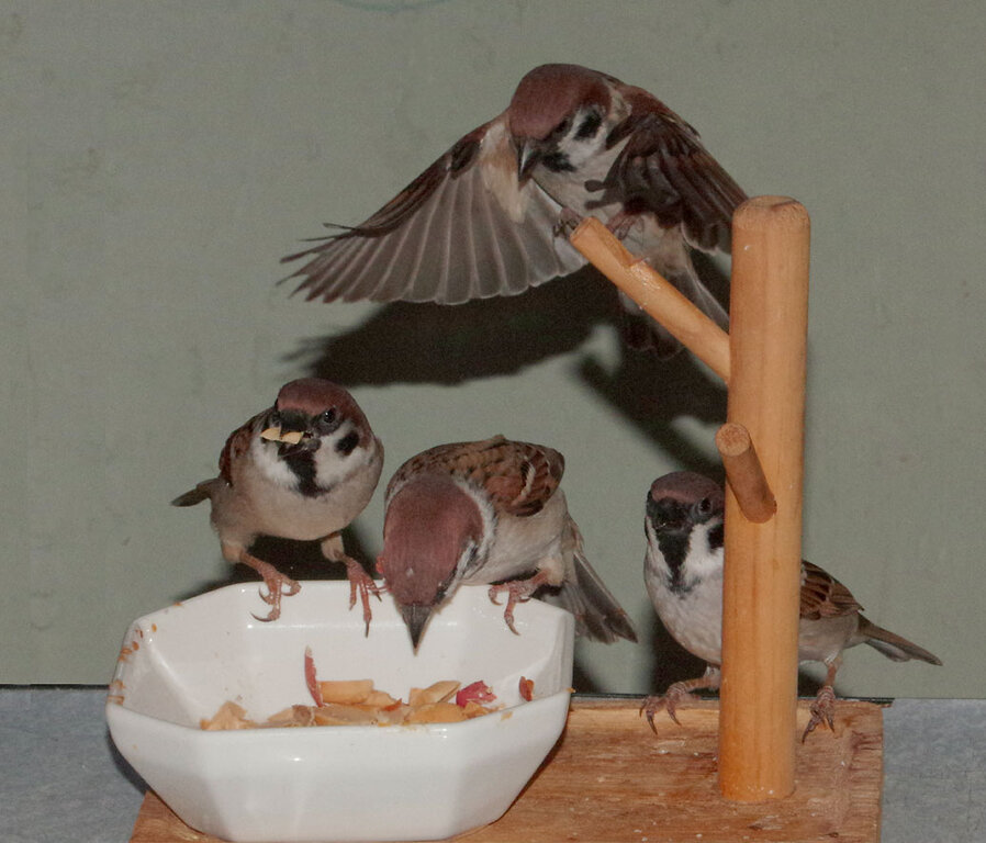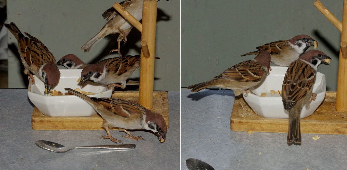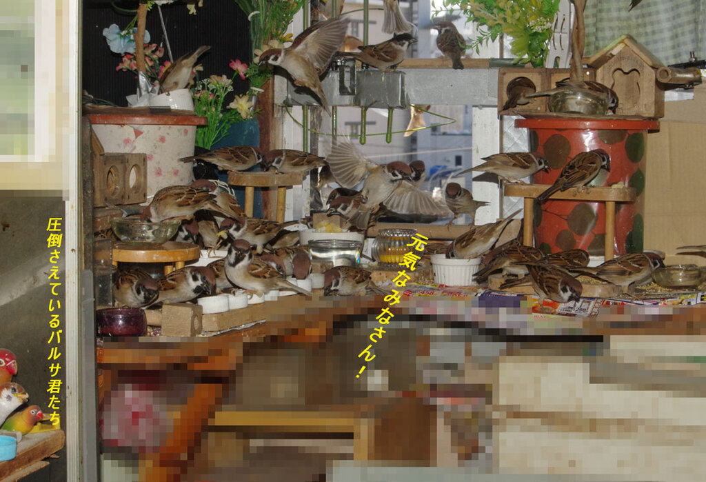 スズメたちは60羽くらいです。冬は食べ物少ないので集まってきますね。ここの近くの豪邸の庭にはシジュウカラとメジロがいてうらやましいです。