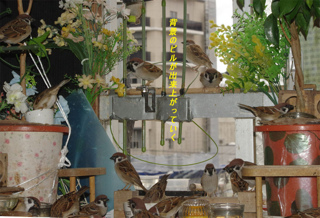 この近くでは古い建物が建て替えばかりです。スズメの巣など作れない環境になってきましたね。