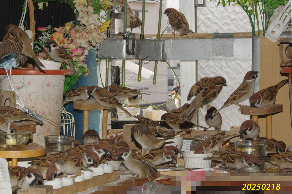 猛禽除けで窓際が狭いので窮屈そうですがみんな我慢です。