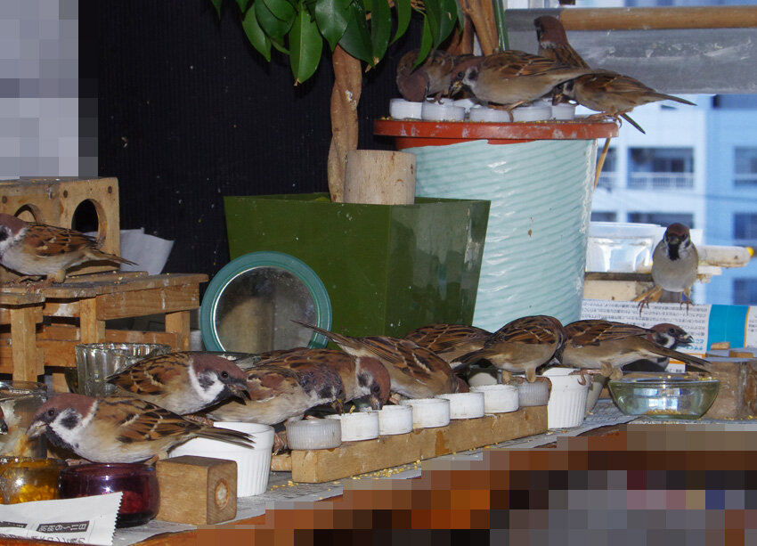 今日は日曜日、雨もあがって風が強い。お昼には待ちかねたように飛び込んできましたがブッチーさんはいつもの出遅れで場所がありません。